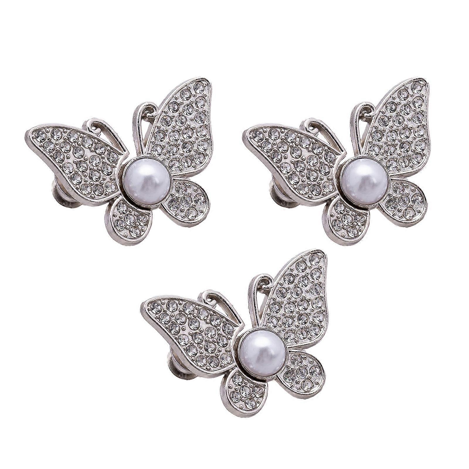 Pearls Decorated Butterfly Waist Tightening Clip 3PCS Nonsewing Waist Tightener Fitness Pin for Loose Pants Jeans silver