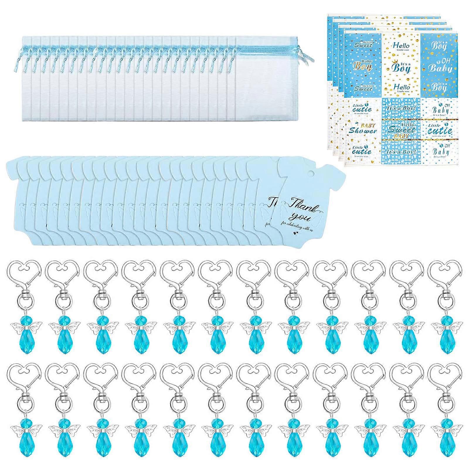 24Pcs Angelic Crystal Keychains with Thank You Cards and Drawstring Organzas Bags for Baby Showers Parties Event Favors Blue
