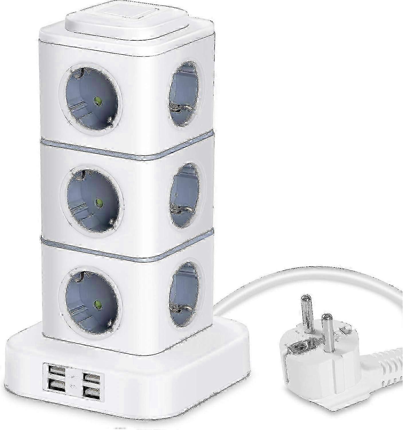 Vertical Power Strip with 12 Outlets & 4 USB Ports Surge Protector for Home Office, 3m Extension Cord (2500w/10a) szrh