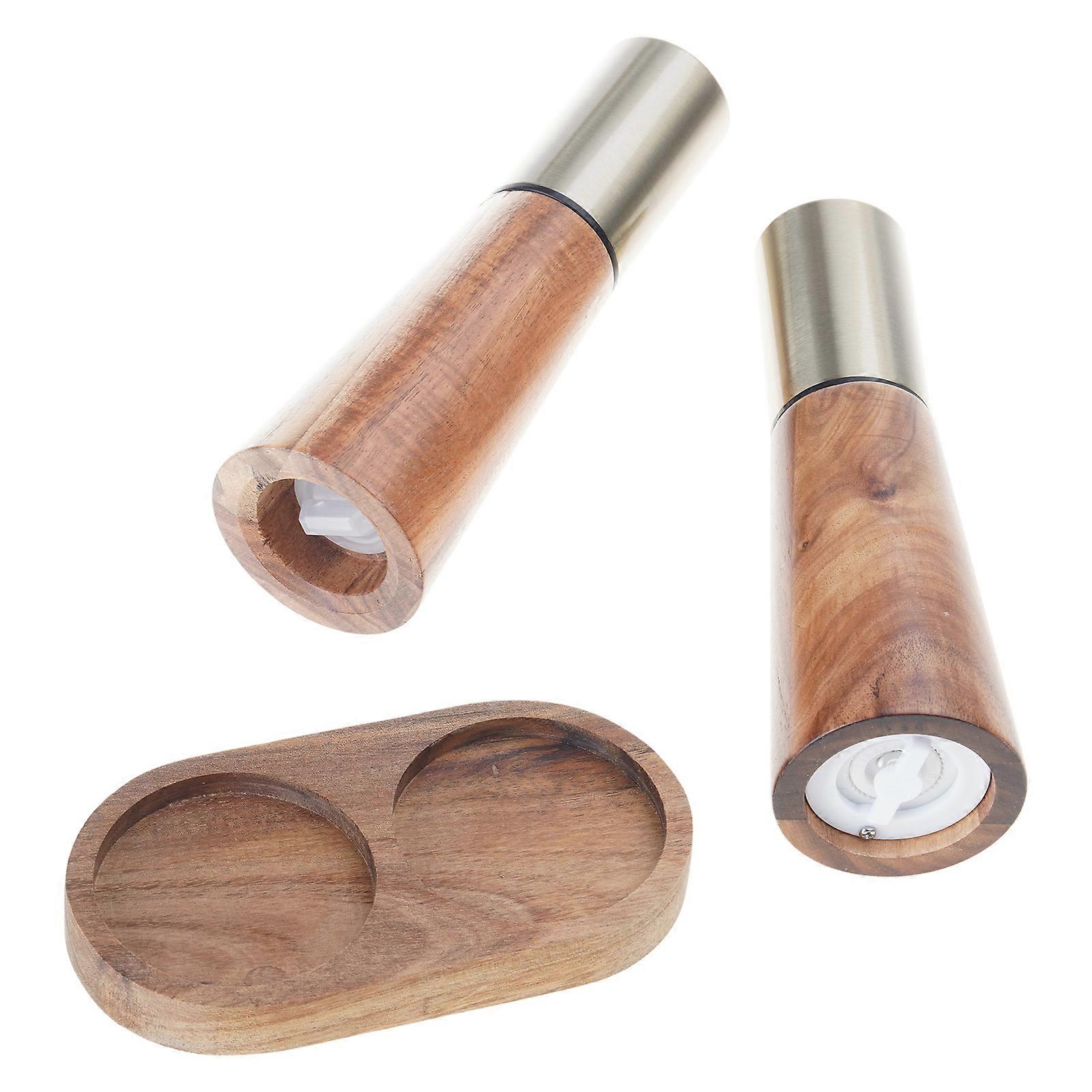 Practical Salt and Pepper Grinder Set with Base Stand Easy to Use Seasoning Tool Salt and Pepper Mill Wood Material Multicolor