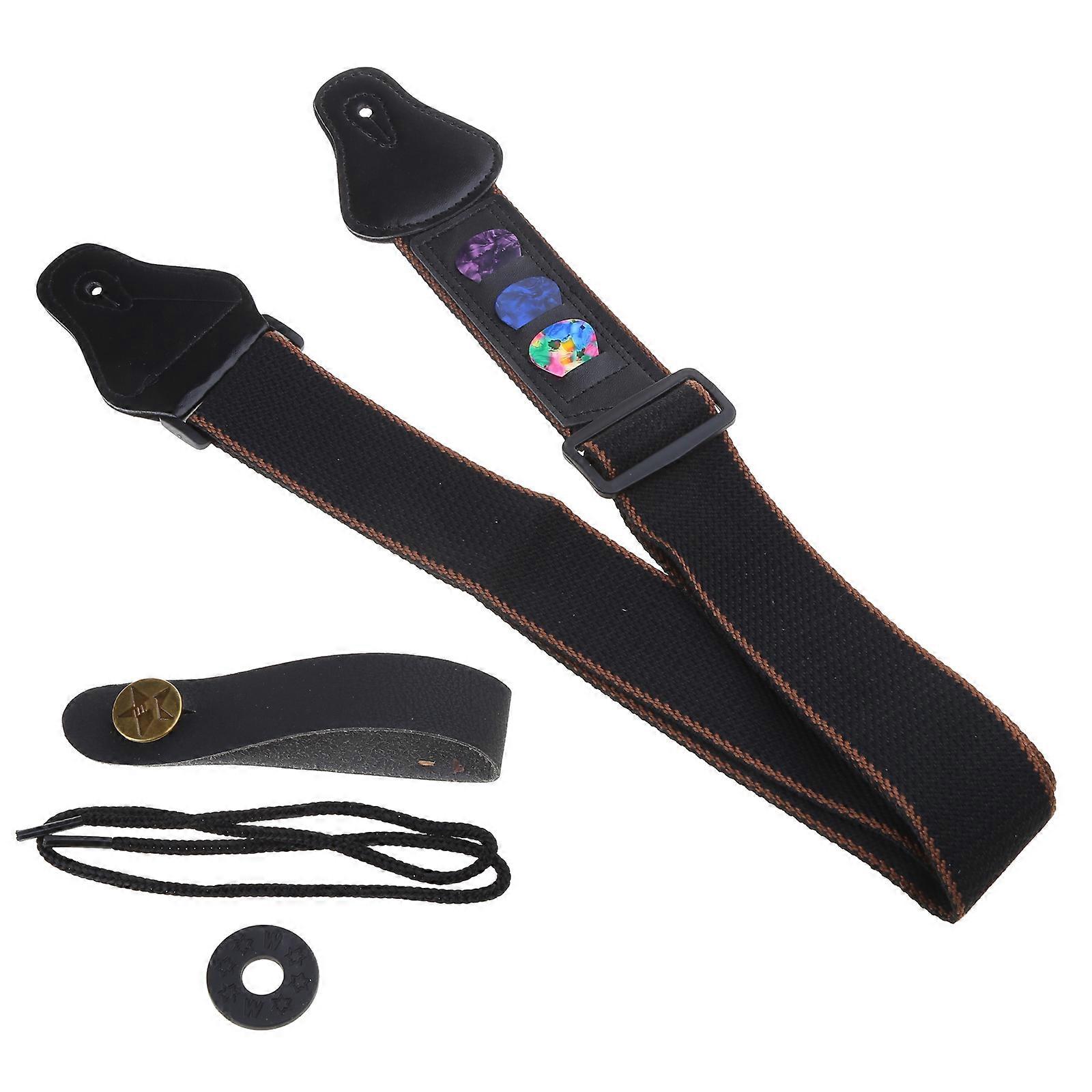 Acoustic Guitar Strap with Pick Pocket Cotton Leather Ends Guitar Shoulder Strap for Electric Acoustic Guitar Durable Multicolor