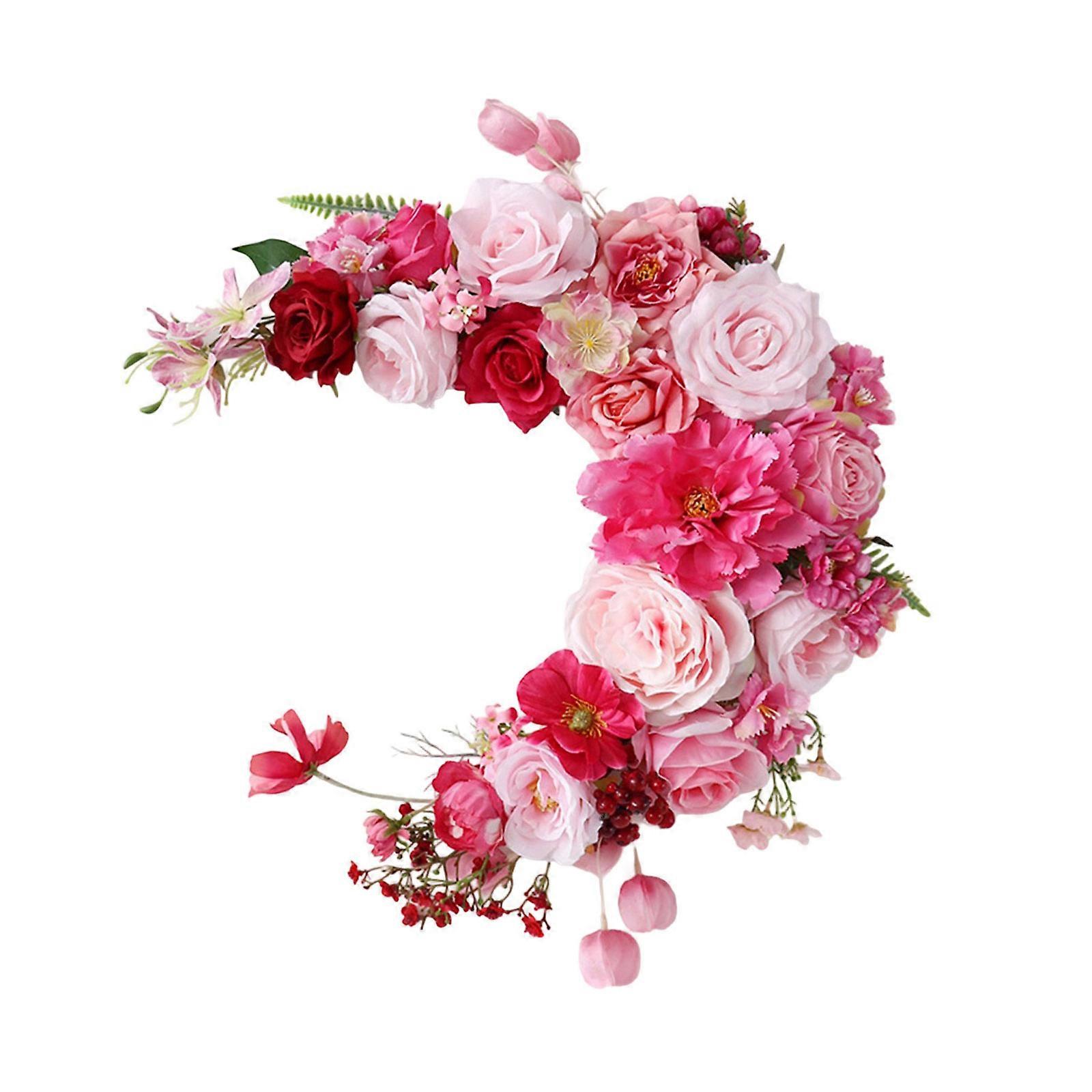 Moon Shape Artificial Flower Wreath Garland Wall Decoration for Wedding Party Home Celebration Rose Powder