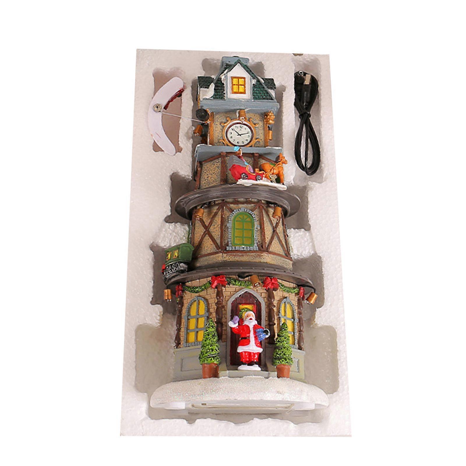 Unique Rotatable Music Box Village House Figurine with Led Light Music Decor Rotatable Birthday Holiday Party Present Multicolor