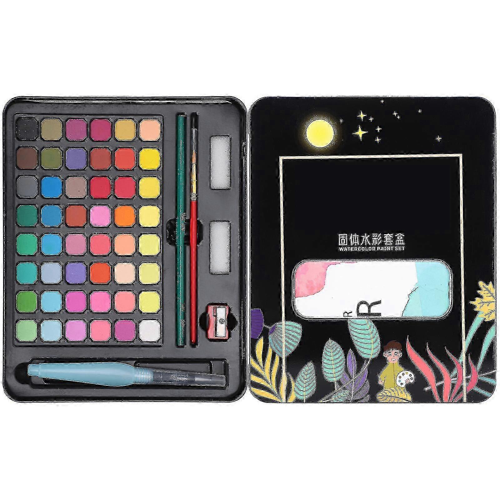 48 Colors Solid Pigment Watercolor Paints Set Portable with Iron Box Mineral Material x