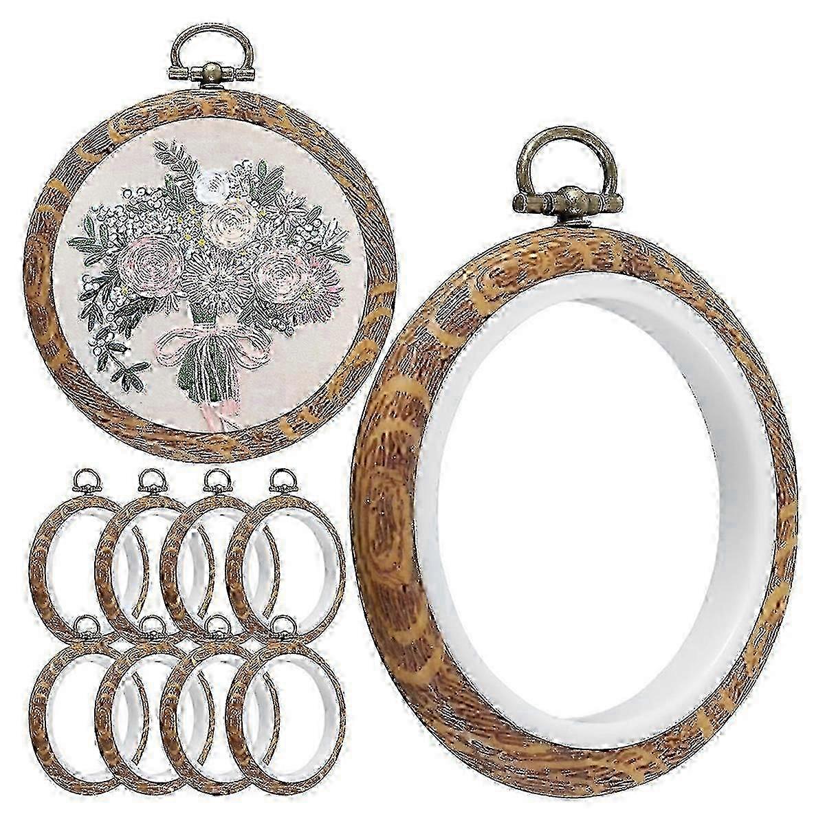 10Pcs Round Embroidery Hoops, 3 Inch Imitated Wood Embroidery Display Frame Kits, for DIY Art Craft x