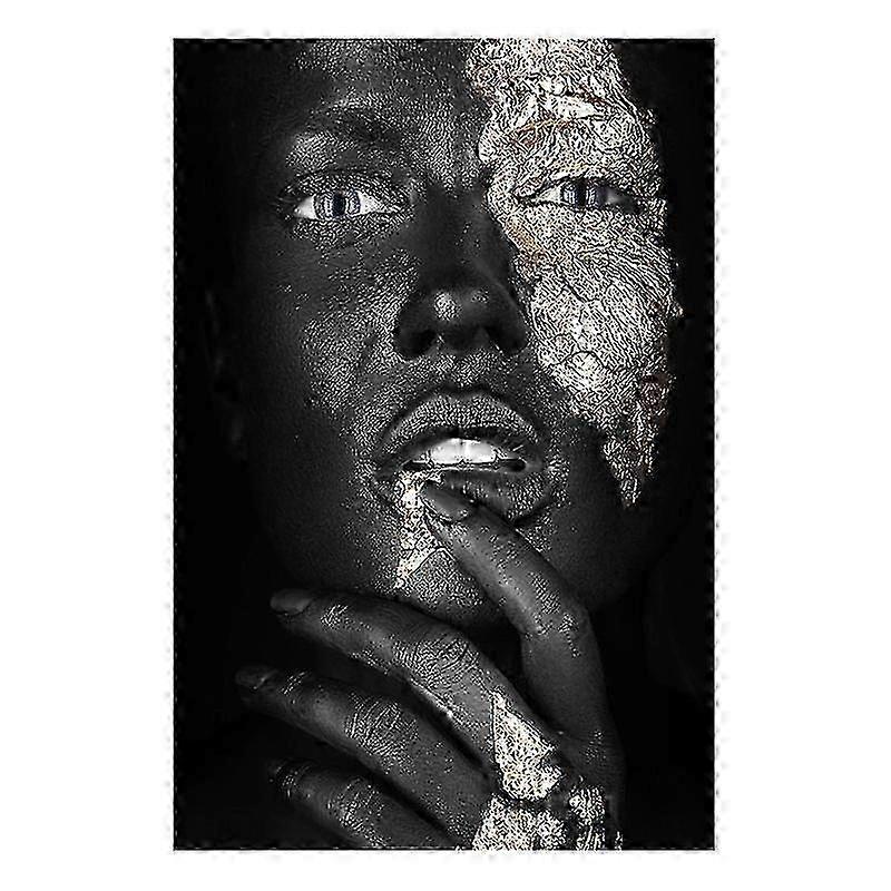 African Black Woman With Gold Foils Oil Painting On Canvas Scandinavian Posters and Prints Wall Art Picture for Living Room x