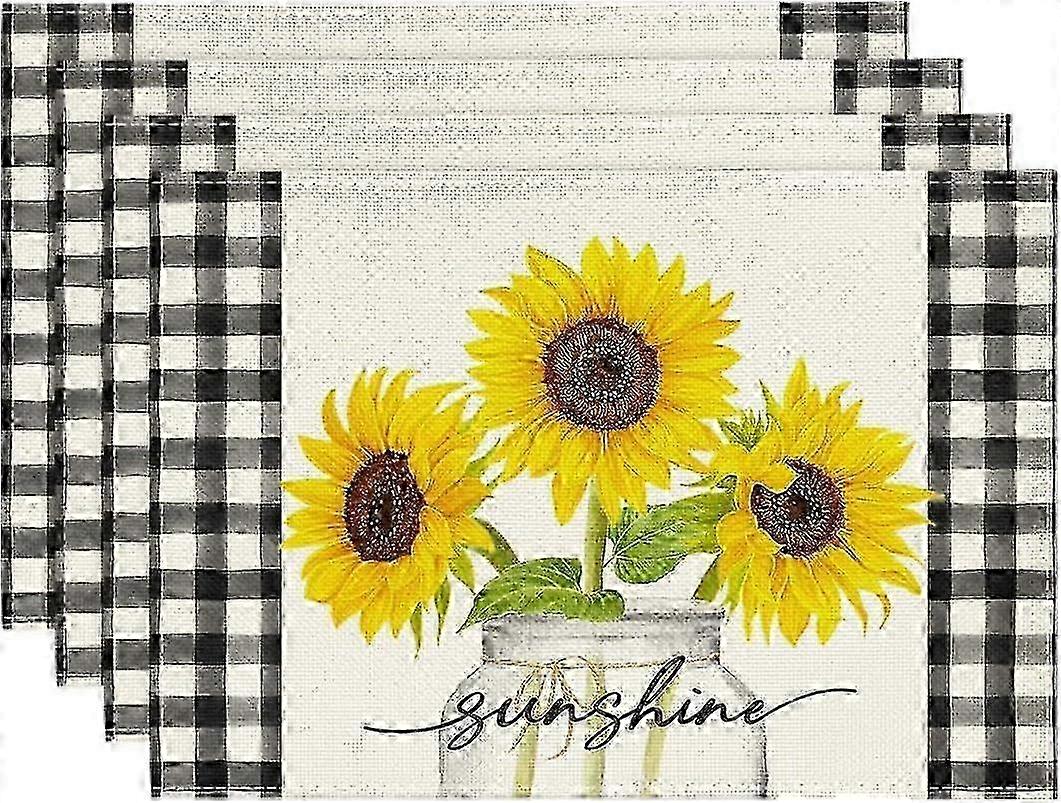 Buffalo Plaid Sunflower Sunshine Vase Summer Placemats Set of 4, 12x18 Inch Spring Table Mats for Party Kitchen Dining Decoration z