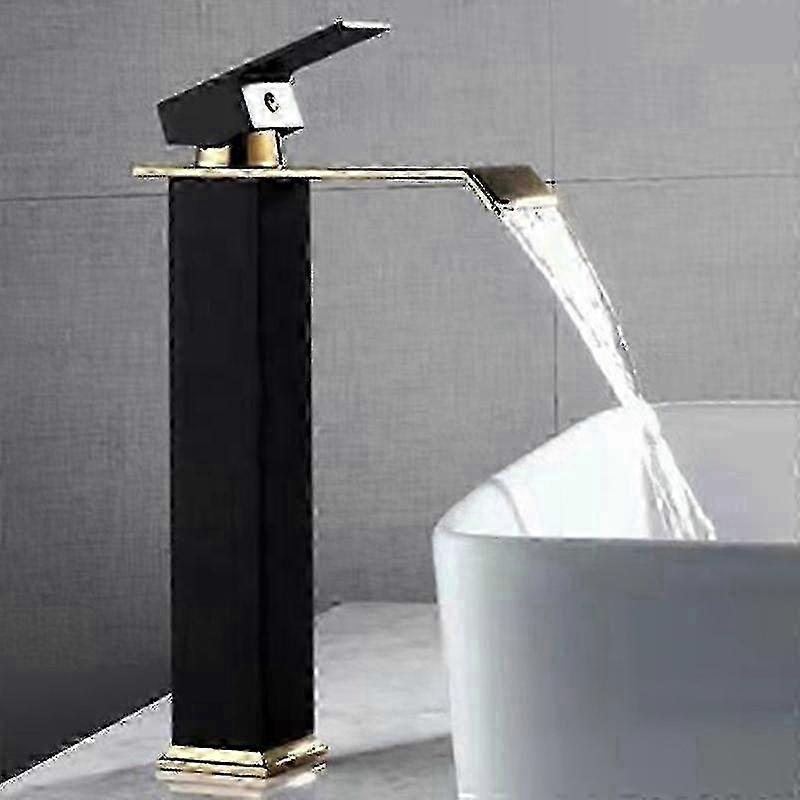 High Quality Brass Black And Gold Bathroom Mixer Tap Waterfall Stainless Steel Tall Basin Faucet x