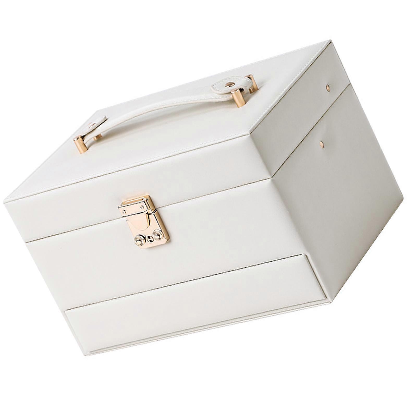 Leather Jewelry Case With Auto Open Designs Multiple Layer Compartments For Necklace Earring Rings Storage White