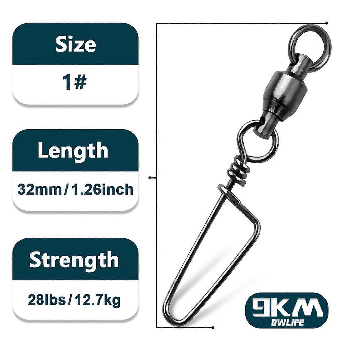 9KM 20Pcs Fishing Snap Swivels Ball Bearing Swivels Snap, for Fishing Quick Connect Fishing Lures Stainless Steel