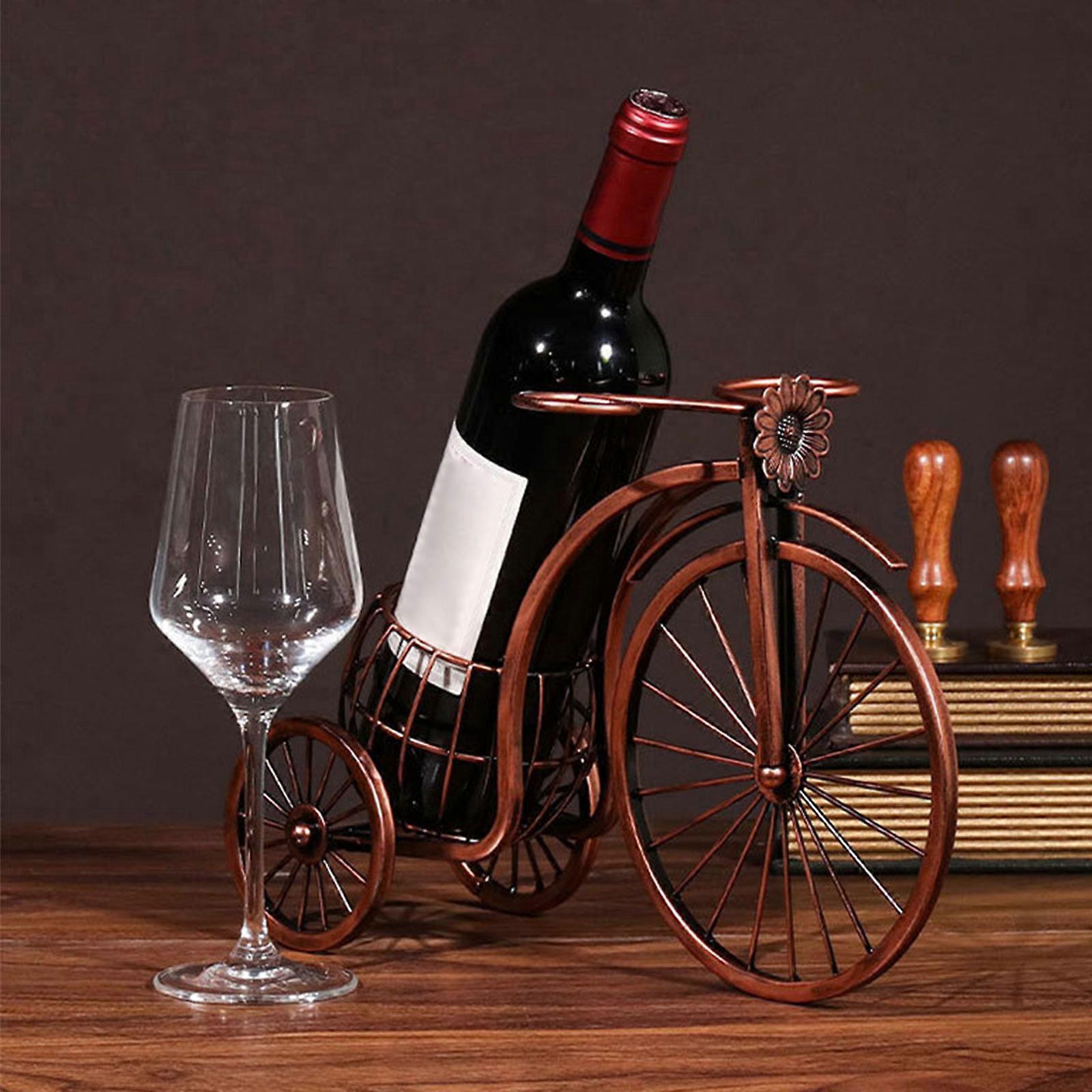 Wine Bottle Holder Desktop 3-wheeled Car Wine Rack Freestanding Countertop Bottle Holder for Wine Storage Metal Material Multicolor