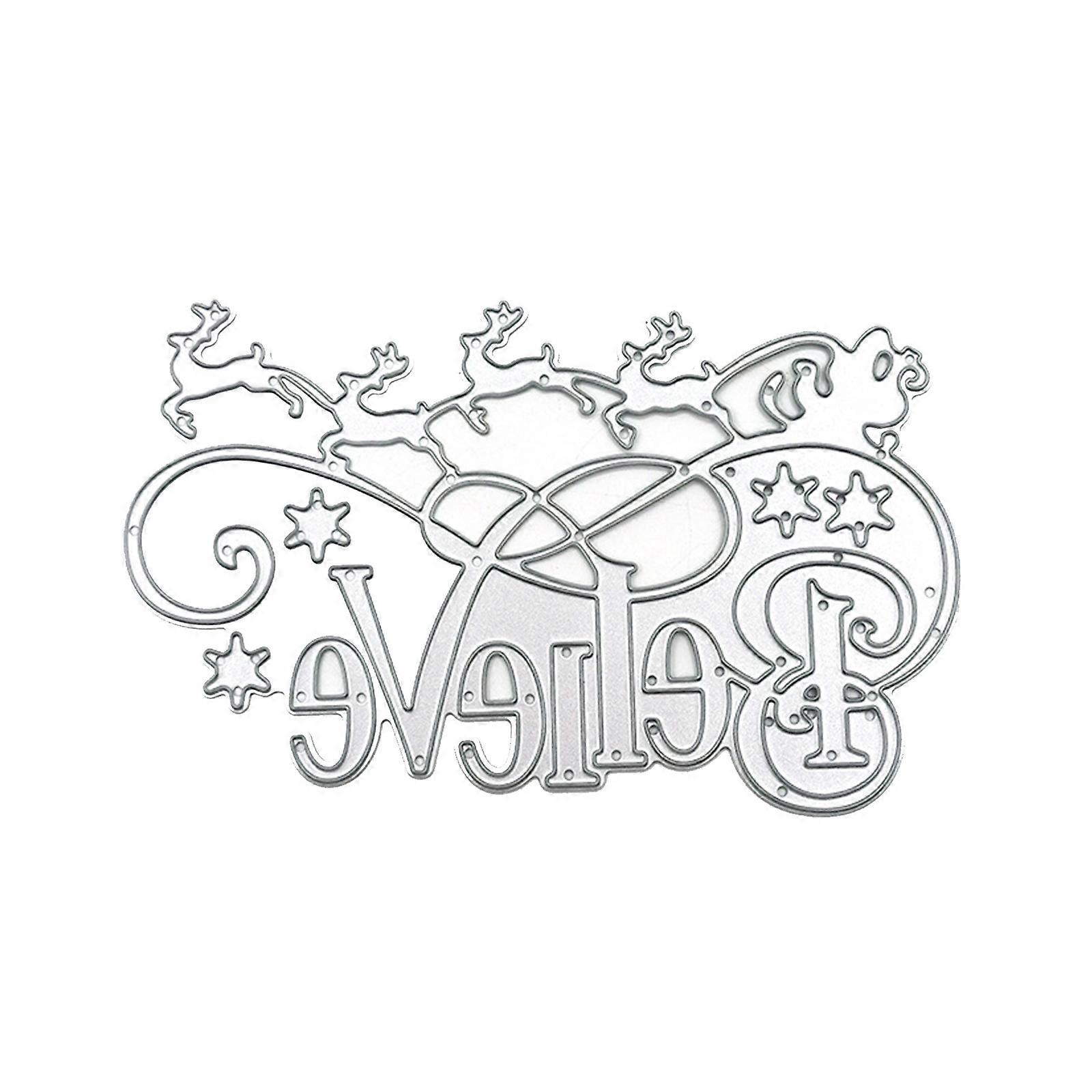 ["Reindeer Letter Christmas Carbon Steel Cutting Dies DIY Scrapbooking Photo Album Embossing Paper Cards Making Stencil\n\nDescription:\nbrand new and high quality\nFeatures:\nThis dies stencil template is made of durable material, suitable for scrapbooking, card making, paper craft, etc.\nCreate incredible shapes from your favorite cardstock and paper, allowing your card and scrapbook designs to be totally unique.\nPerfect for scrapbooking, card making, paper crafts, themed invitations, pocket scrapbooks, album decoration, photo frame etc.\n\nSpecification:\nType: Dies Stencil \nMaterial: Carbon steel\nApplications: for scrapbooking, card making, paper crafts, themed invitations, pocket scrapbooks, album decoration, photo frame\nFeatures: Dies Stencil, DIY Cutting Dies, Scrapbooking Photo, Album Embossing, Paper Cards Making, Stencil Decorative Crafts \nDimension: app.11.1x7.2cm/4.37x2.83in\nColor: Silver\nQuantity: 1 Pc\n\nNote: \n1.Please allow 0-1cm error due to manual measurement. pls make sure you do not mind before you bid.\n2.Due to the difference between different monitors, the picture may not reflect the actual color of the item. Thank you!\n\nPackage includes:\n1 Pc x Dies Stencil"]