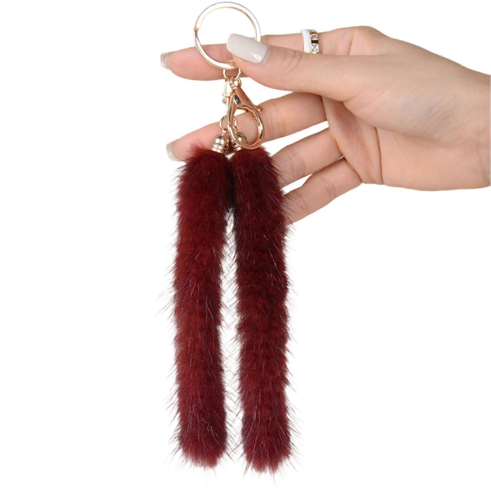 Soft Mink Tail Key Holder With Lightweight Design Car Hanging Ornament For Purse Car Keys Stylish Sturdy Gift Wine Red