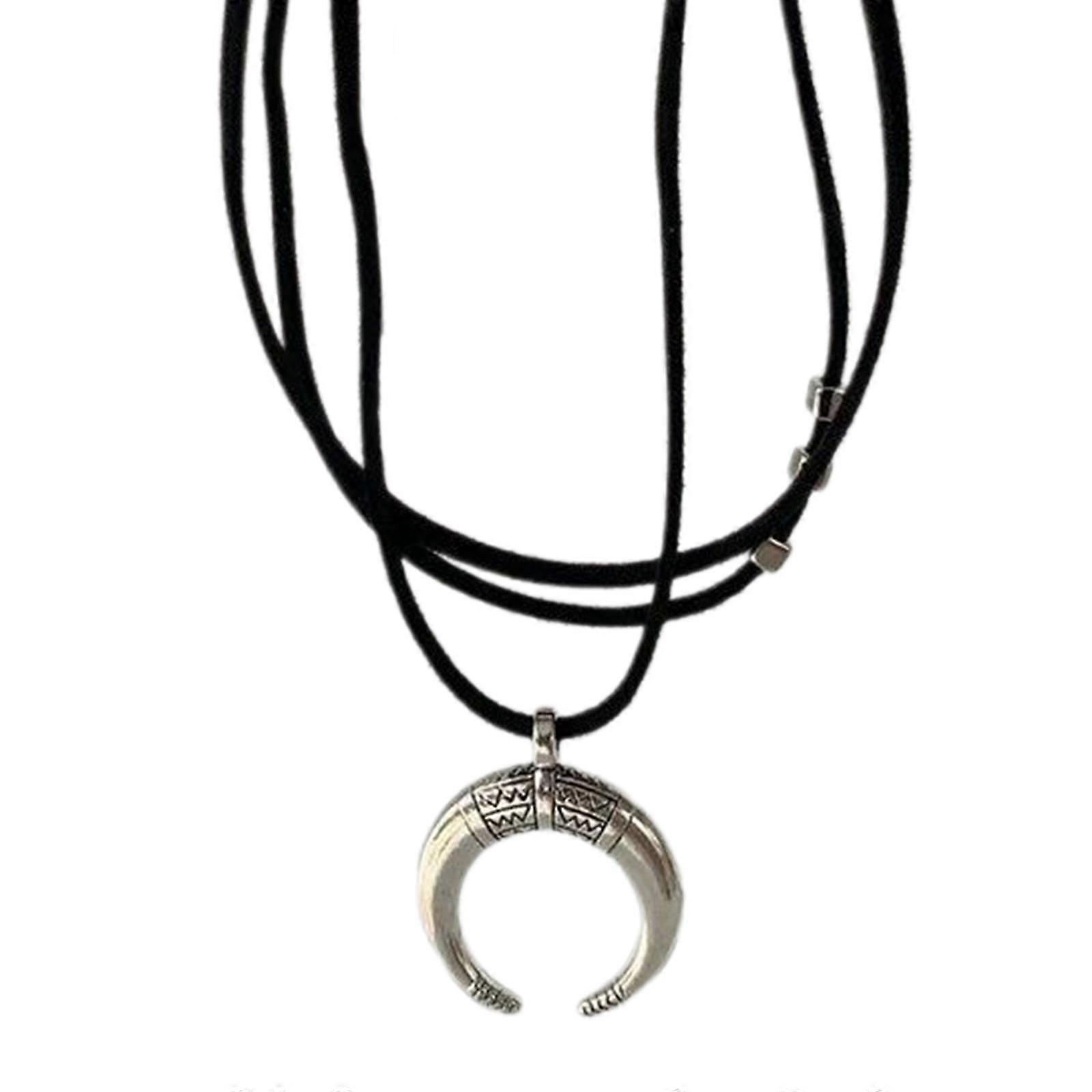 Fashion Moon Horn Pendant Necklace Multilayer Adjustable Clavicle Chain Choker Necklace Jewelry Gift for Women Girls Multicolor