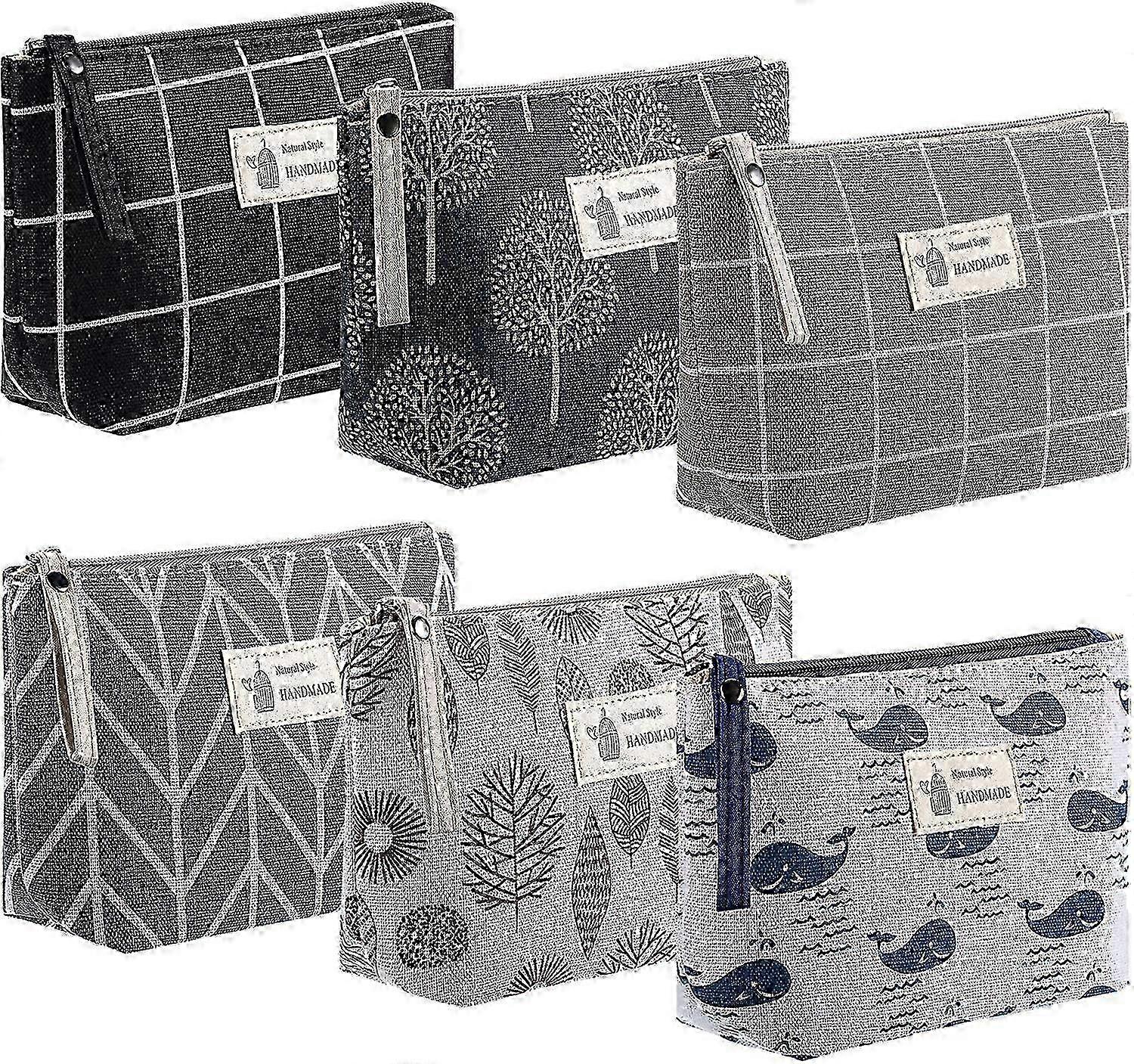 6pcs Canvas Cosmetic Bags Printed Zip-Up Canvas Toiletry Bag (Grid Style) 26s