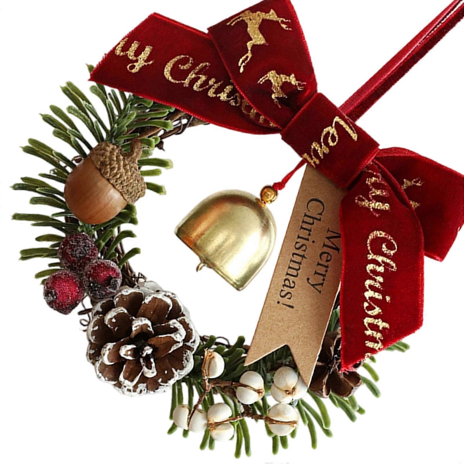 Classical Christmas Door Wreath Ornament Feature Natural Pinecones Bells and Velvety Bowknot Holiday Decoration Red