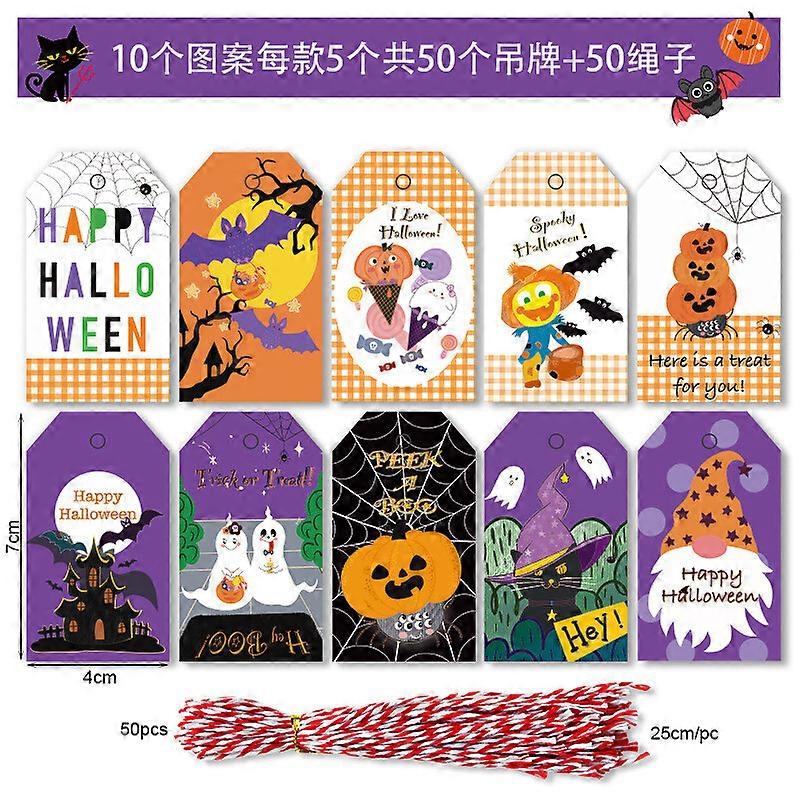 50/100Pcs NEW Happy Halloween Gohst Pumpkin Paper Gift Tags Label + Jute Strings