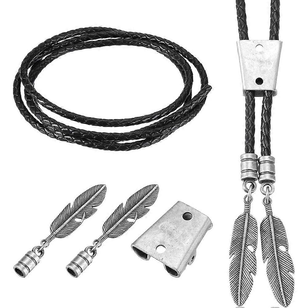 Bolo Tie Findings Kit,Bolo Tie Accessories Include Slide Clasps,1Yard Black Leather Braided Cord for DIY A