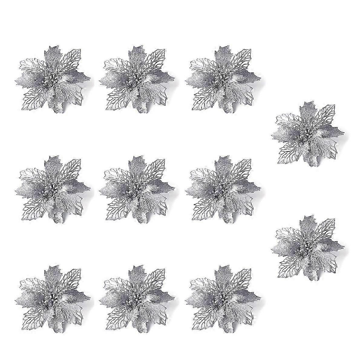 Glitter Christmas Flowers 10PCS Artificial for Wreath Making Supplies