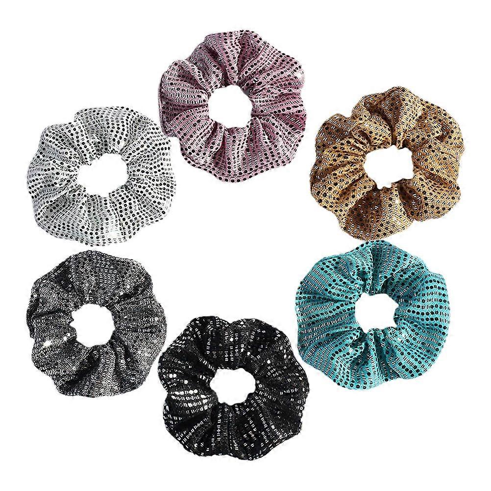 Elegant Sequin Hair Scrunchies Large Intestine Hair Ring for Decoration 6Pcs