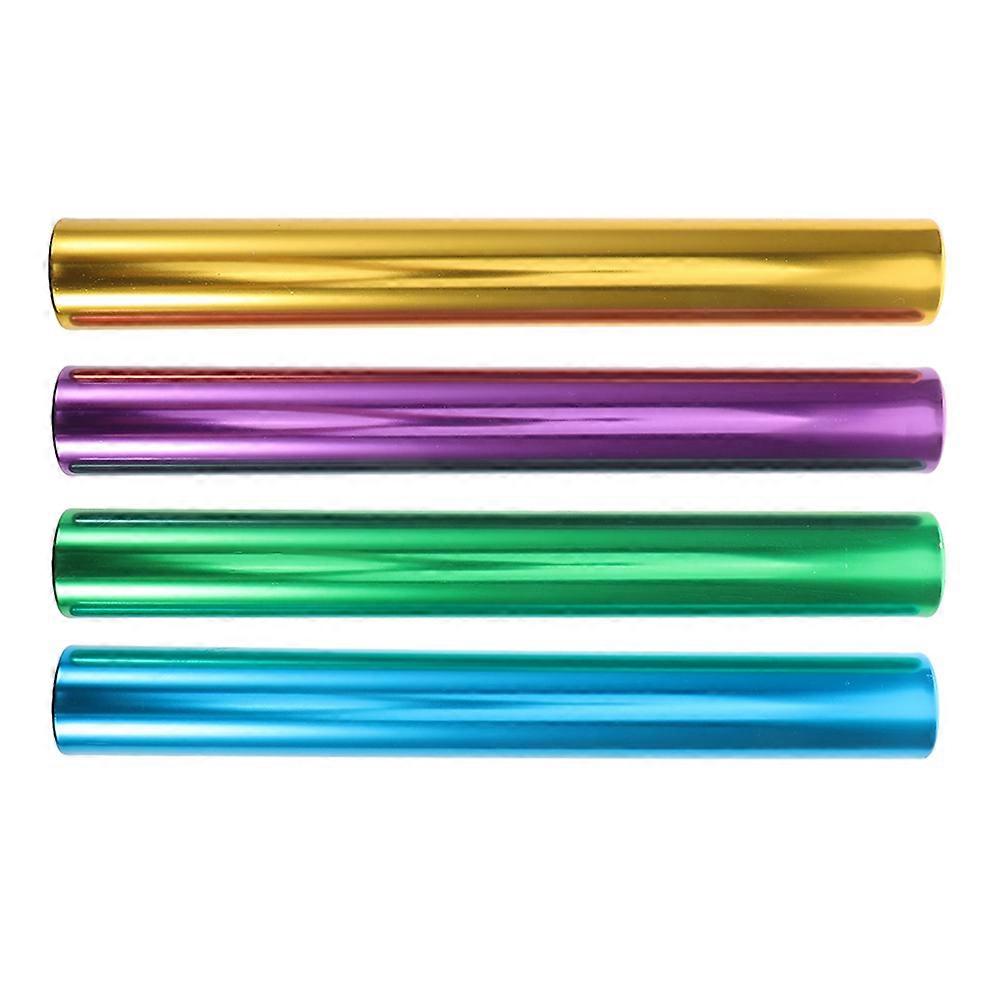 Featuring a vibrant metallic , these relay rods are not only functional but visually appealing, adding a professional touch to any race. Their ergonomic design promotes easy handling, while the sturdy construction ensures use. Suitable for athletes of all levels, they are suitable for training and competitive events alike. Features -Color:Assorted Color -Material:Aluminum alloy -Size:30.00X2.70X2.70cm/11.79X1.06X1.06in -Reliable material: constructed from lightweight aluminum alloy, these relay sticks offer high strength and durability, making them suitable for sprint relay races -Enhanced grip: the electroplated surface provides a smooth and abrasionresistant finish, ensuring a firm and stable grip for athletes during baton exchanges -Comfortable handling: ergonomically designed to fit the natural shape of the hand, these relay sticks prevent slipping and provide a comfortable grip during races -Optimized : designed to minimize energy loss during baton exchanges, these relay sticks help teams achieve better performance and faster times -Versatile use: suitable for various race events, these relay sticks meet professional standards, making them an excellent choice for both training and competition Package list: 4 x aluminum alloy relay rods