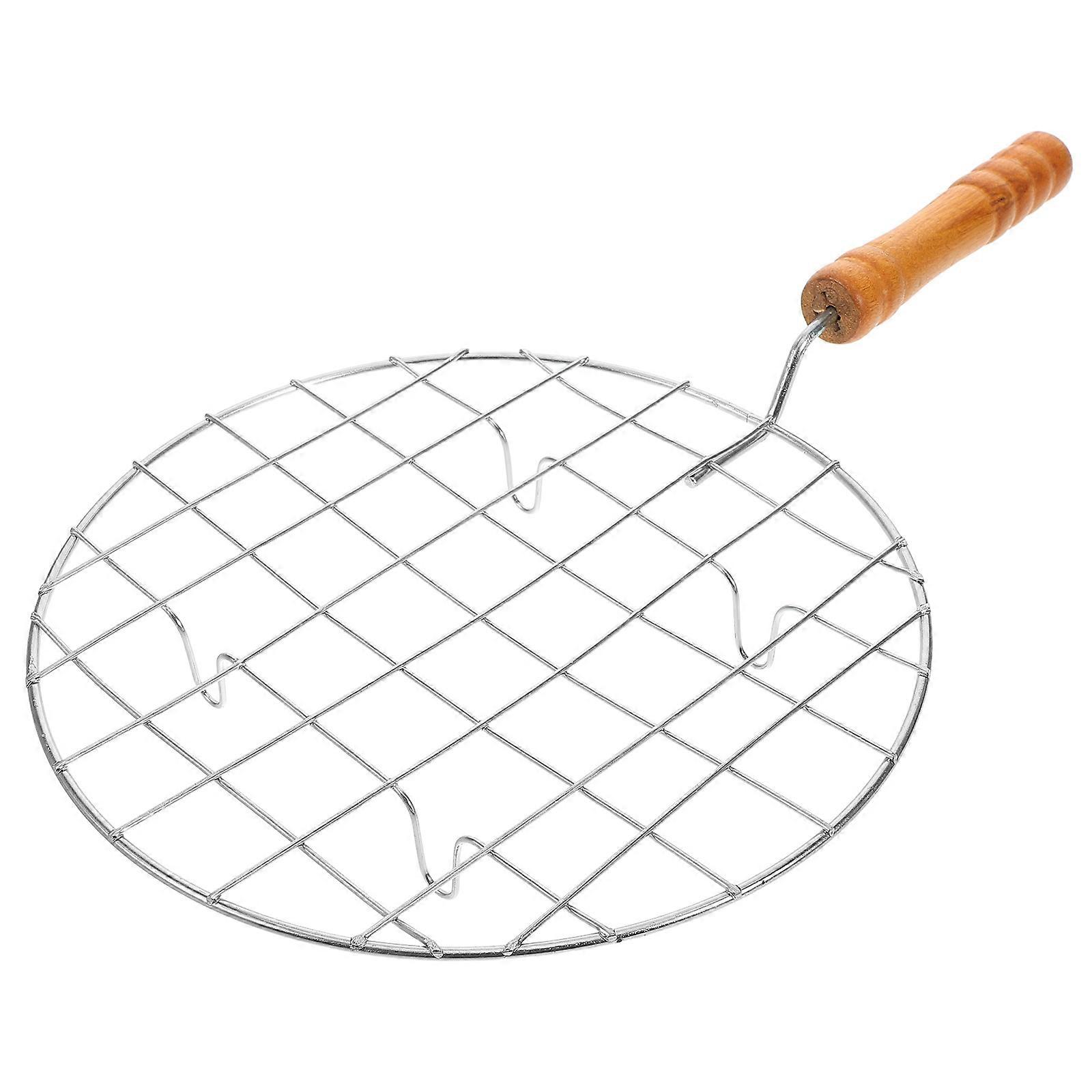 Round Stainless Steel Barbecue Net For Outdoor Camping Grilling With Wooden Handle 31.00X19.00X2.50CM Multi-Purpose 1Pcs