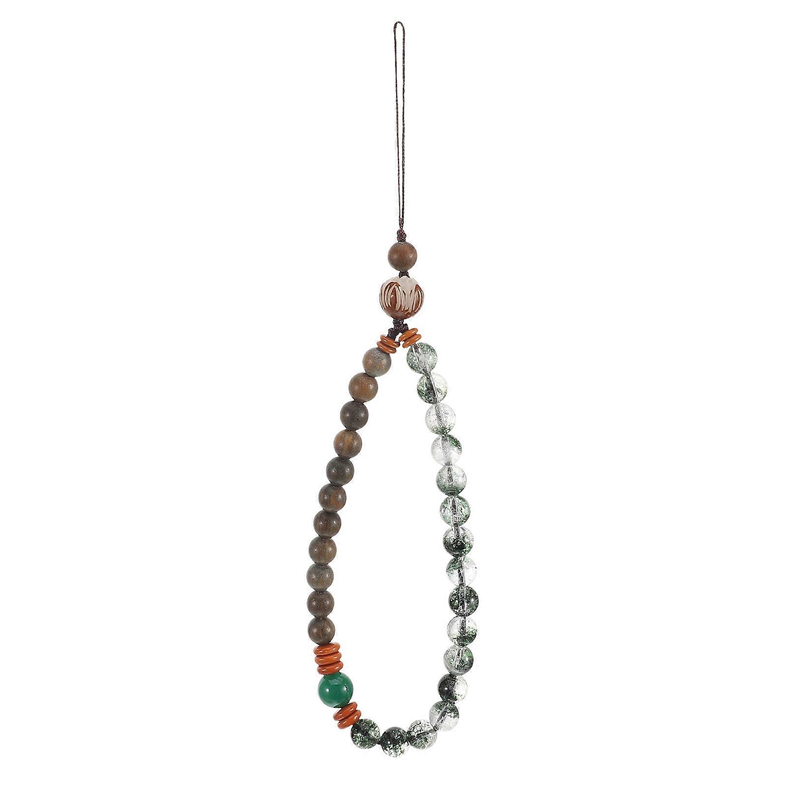 Decorative Beaded Phone Lanyard with Crystal and Wood Wrist Strap