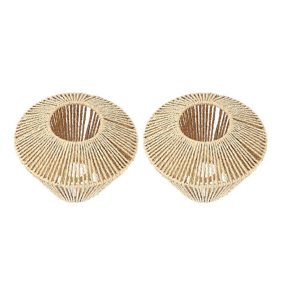 Boho Woven Lamp Shade for Home Use 2Pcs Rustic Style Khaki Pendant Light