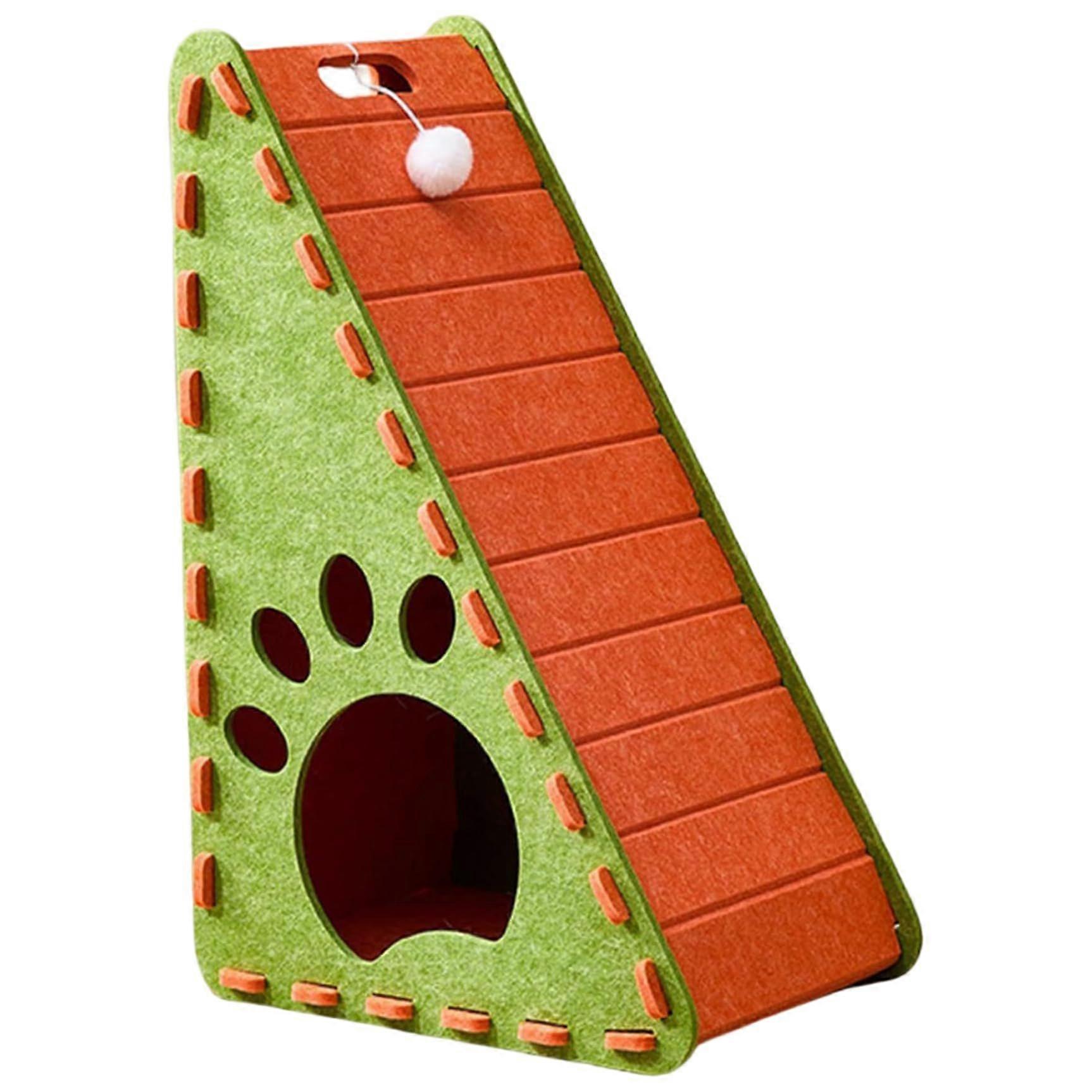 Triangular Felt Cat Scratcher, with Plush Ball and Inner Bed, Anti-Lost and Anti-Scratch Scratching Board for Indoor Kitten, Green Scratching Mat