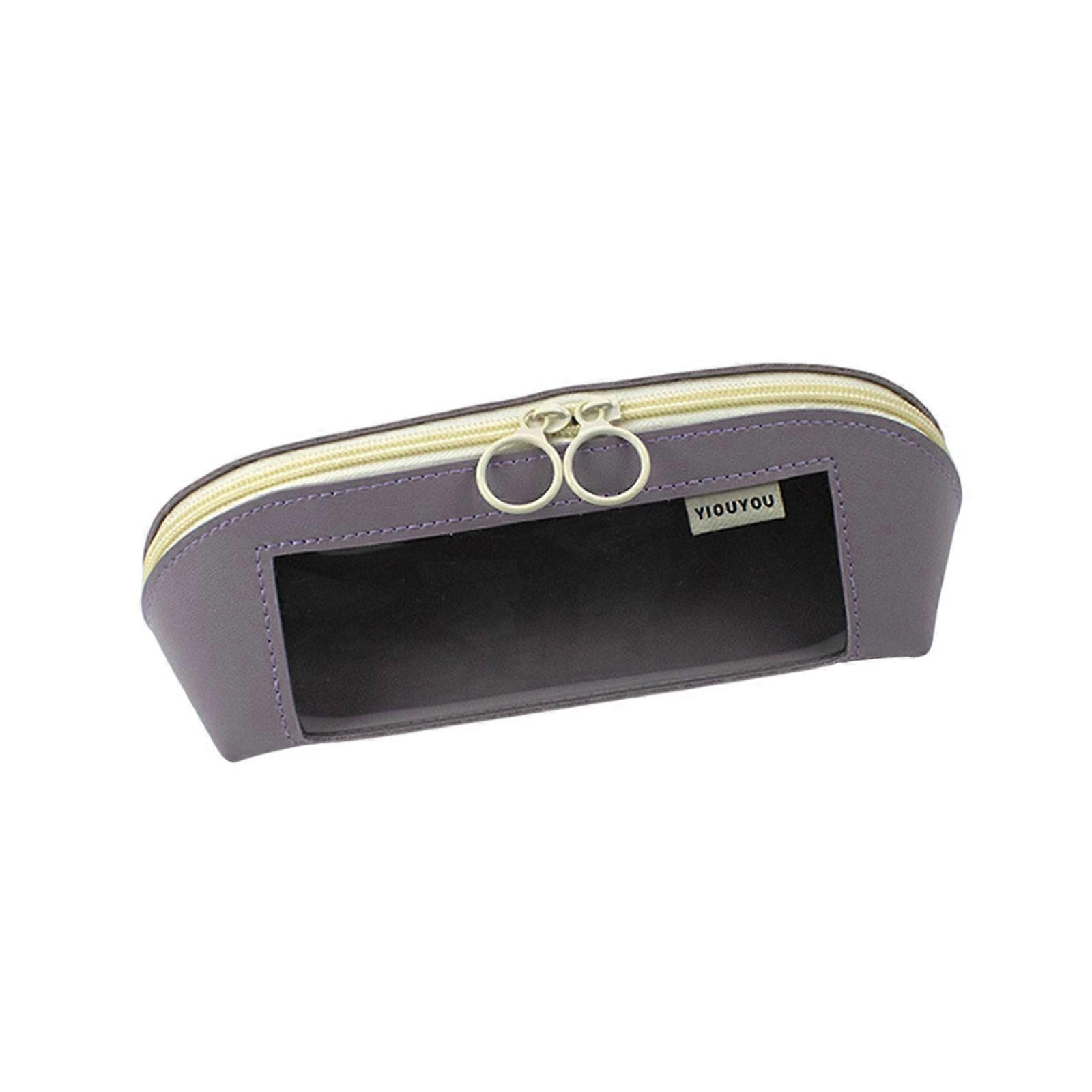 High Capacity Leather Pencil Case Clear Water Resistant Pen Pouches Pen Organizers Bag Travel Makeup Bag 9.25x3.35Inch Purple