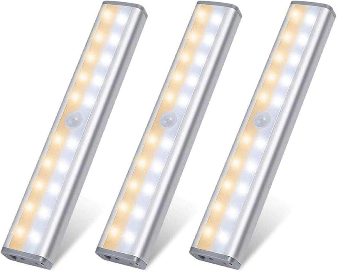Automatic Sensing With passive infrared technology, it can be detected by the motion of a human in the dark. Lights is auto-on within 10 feet, auto-off after 20 seconds of no motion detected helps prolong battery life. Product Size (LxWxH): 7.5 x 1.3 x 0.5 inch Package Size (LxWxH): 8.0 x 4.3 x1.2 inch The PRIORARE Motion Sensor Closet Package Include 3 X LDE sensor cabinet light 3 X magnetic strip 2 X USB cable 1 X User Manual LED: high efficiency, power saving, long life, energy-saving, environmental protection, human body infrared detection, and sensing technology: highly sensitive, anti-interference. Inductive control design can achieve people's lightness, automatic delay and extinction, save energy and worry, no longer worry about forgetting to turn off the lights and liberate themselves. A built-in optical fiber sensing device, automatic recognition status day and night, automatic standby during the day, night induction lamp, energy-saving, and environmental protection. Built-in 800mAh lithium battery, it can be charged via USB cable and compatible with power bank, PC USB port, phone charger, etc. Three light modes: white light, warm light, white light and warm light, which kind of light can be manually adjusted.