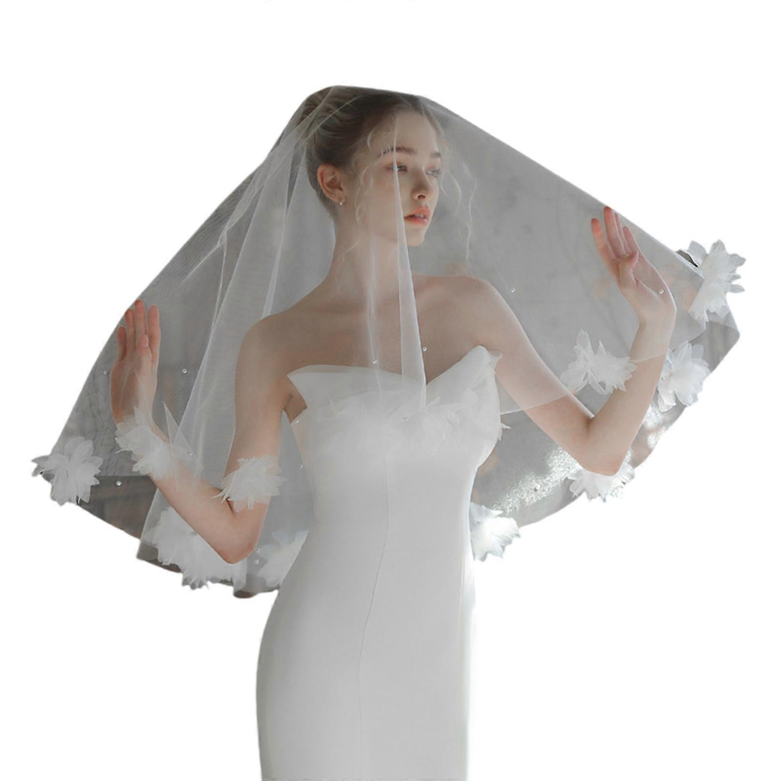 Wedding Veil for Bridal Shower Flower Beadwork Wedding Bride Headwear Single Layer Tulle Bride Veil for Engagement Event Multicolor