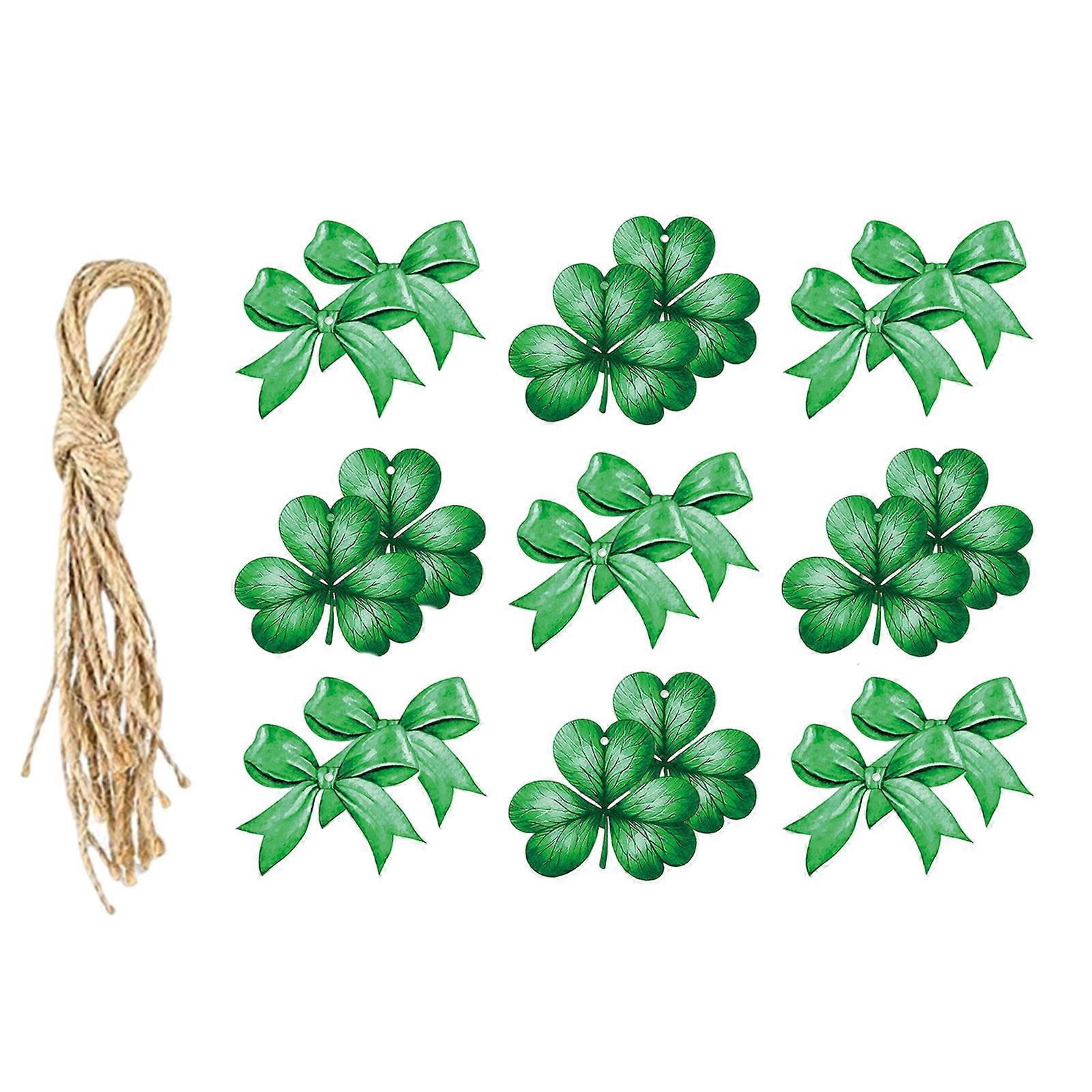 24Pcs Patricks Day Green Shamrock Bowknot Paper Gift Tagged Labels Ornaments for Tree and Festival Gift Wrapping Decors Multicolor