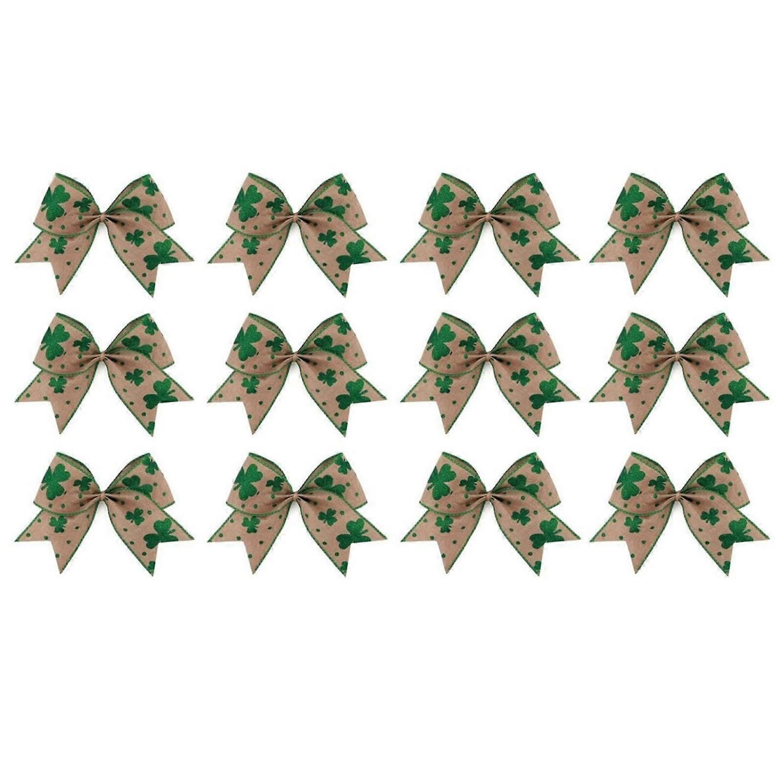 12Pcs Shamrock Bowties For Patricks Day Celebration And Party Decoration Irish Festival Wreath Bows for Packaging Multicolor