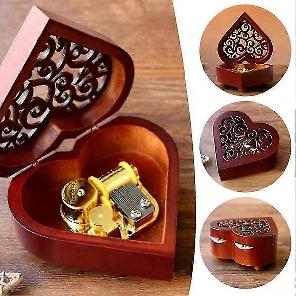Heart Shaped Vintage Wood Carved Mechanical Music Box Wind Up Music Box Gift