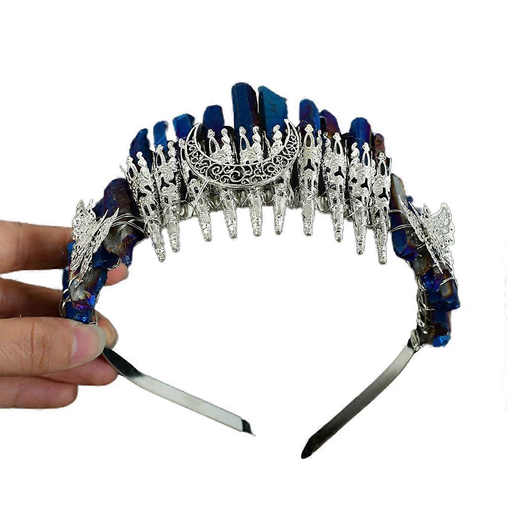 Handmade Bridal Headband for Raw Crystal Crowns Headband with Moon for Butterfly Vintage Hairband Party Prom Costume Hea Multicolor