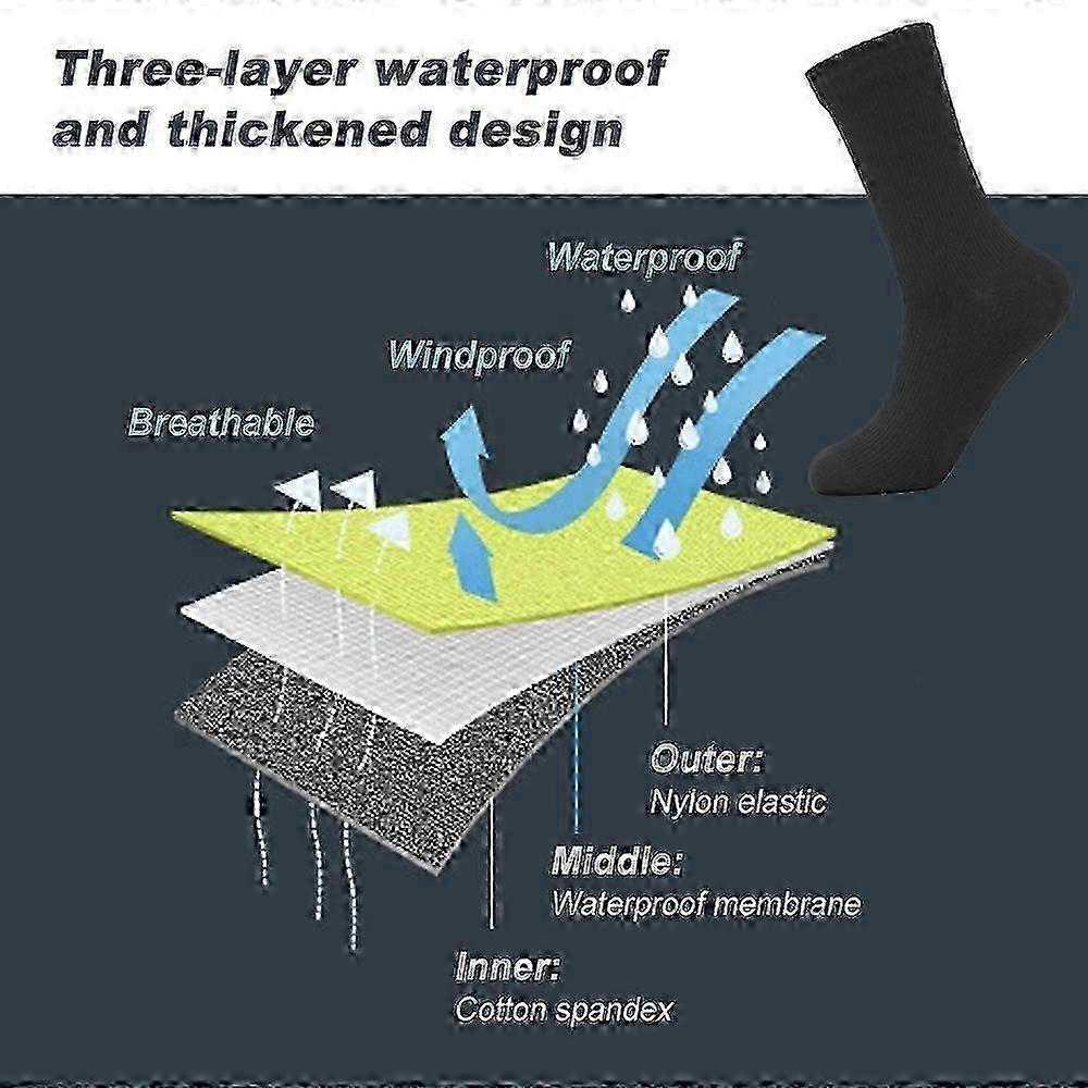 Waterproof Outdoor Adventure Socks for Adults - Breathable Warm and Waterproof Socks for Skiing Water Sports Hiking Cycle - Ideal for Exploring Mountaineering and Riding This outdoor skiing wading sports warm breathable waterproof sock is the ideal choice for adventure, mountaineering, and Cycle, with a three-layer waterproof thickened design, comfortable and breathable, wear-resistant and durable. Features: Elastic Sock Mouth: Moderate elasticity, not easy to age, provides a comfortable wearing experience. Reinforced Heel: Y-shaped heel, reinforced and wear-resistant, enhances the durability of the socks. Hand-sewn Head: The sock head is hand-sewn, comfortable to wear, and not easy to rub the feet. Three-layer Waterproof Thickened Design: The waterproof breathable membrane is sandwiched between the dry outer layer and the comfortable inner layer, keeping the feet dry. Preferred Comfortable Cotton: Soft and breathable without pilling, provides a wearing experience. Specifications: Outer Layer Material: 98% High Wear-resistant Nylon, 2% Elastic Rubber Middle Layer Material: Thin Waterproof Film Inner Layer Material: 80% Fine Yarn, 20% Nylon Size S M L XL Bottom length/cm 20-21 22-23 24-25 26-27 Foot Code 36-39 40-42 43-46 47-50 Package Weight: 140g (4.9oz) Package Size: 27 x 14 x 3cm (10.6 x 5.5 x 1.2in) Package List: 1 x Waterproof Sports Sock Note: Due to the light and screen setting difference, the item's color may be slightly different from the pictures. Please allow slight dimension difference due to different manual measurement.