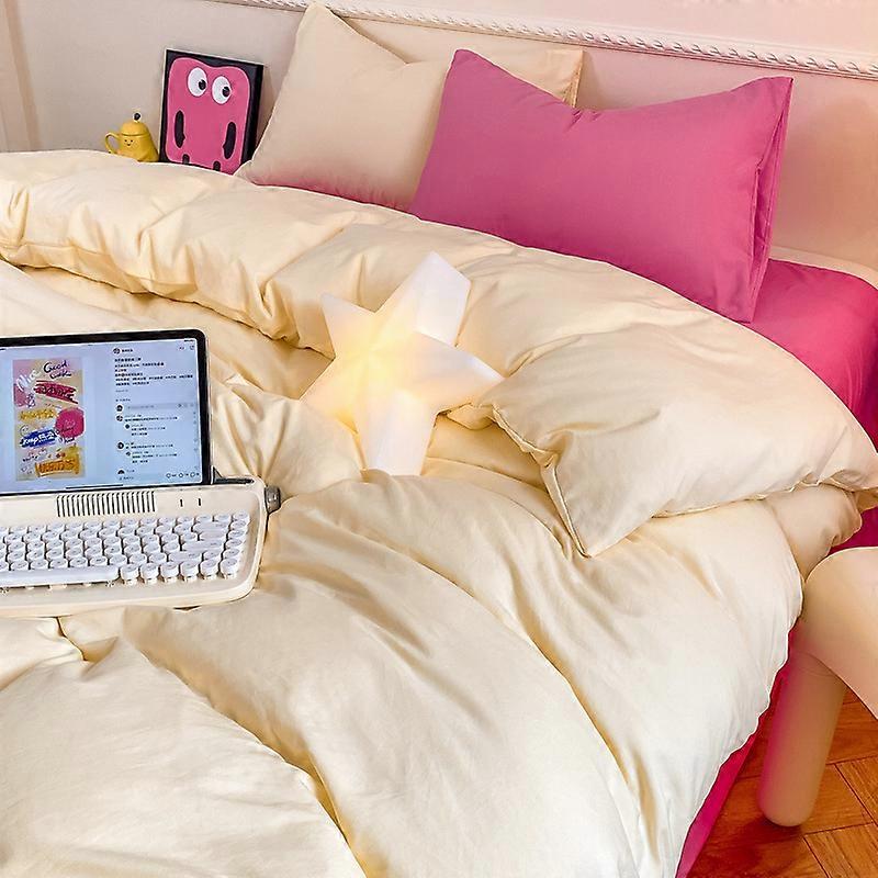 Light yellow + rose red [Class A ultra-soft baby-grade] 1.5*2.0m single duvet cover set, ultra-soft cloud-like washed cotton four-piece