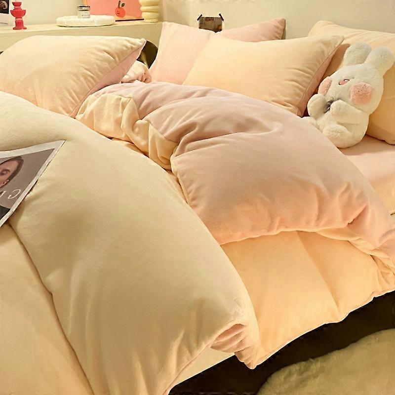 Milkshake Yellow + Pink Jade 150*200 [Single Duvet Cover] Winter Color Milk Fleece Four-Piece Set Thickened Coral Fleece Double-Sided Warm