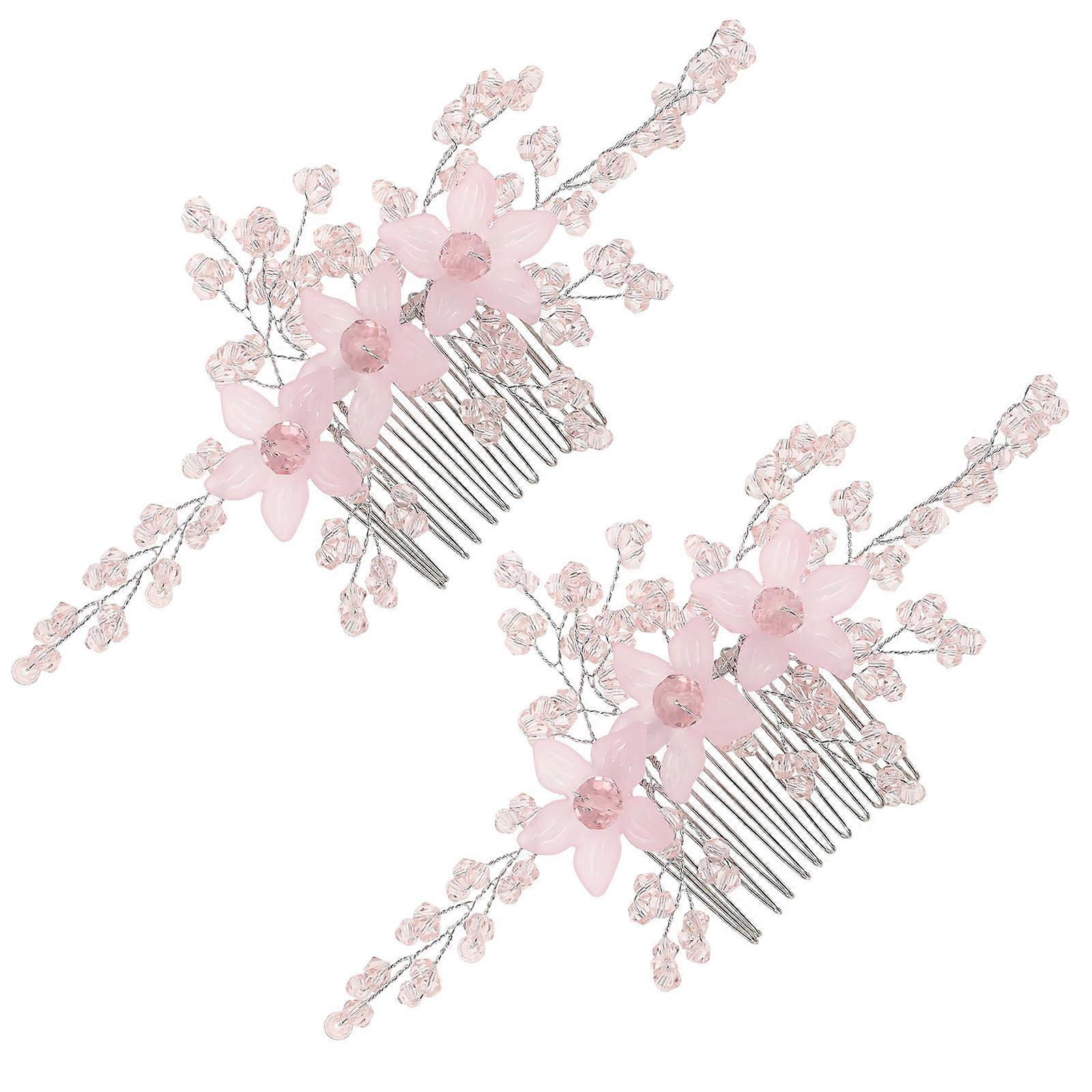 Wedding Hair Comb for Wedding Party Handmade Crystal Pink Accessory