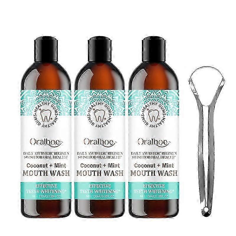 Teeth Peppermint Oil For Breath 3pcs Coconut Oil With Scraper Oil Mouthwash Function: Clean Mouth And Freshen Breath Net Content: 11ml*20 Applicable Objects: General Fragrance: Lemon Features: 1. Alcohol-free, Non-irritating, Gently Cleans Around The Mouth And Dead Corners, Does Not Damage The Oral Mucosa, Protects Teeth, And Reduces Tooth Stains 2. Freshen Breath And Protect Periodontal Period. Contains Cleaning Ingredients To Leave A Fragrant Mouthfeel, Refreshing And Pleasant. Combined With Plant Extracts, It Maintains Stability And Cares For The Oral Cavity. 3. Deep Cleaning, Double Oral Protection, Cleaning The Entire Oral Area, Deep Brushing Blind Areas, Helping To Solve 90% Of Oral Problems 4. It Can Kill Bacteria That Cause Bad Breath, Strengthen Teeth, Prevent Tooth Decay, Restore Tooth Enamel, Clean The Mouth, And Freshen Breath. 5. It Lasts About 12 Hours, No More Bad Breath, And You Can Taste Fresh And Clean. The Anti-cavity Mouthwash Can Freshen Your Breath While Making Your Teeth 50% Stronger Than Brushing Alone. Package Included: 3 Set* (1 Mouthwash, 1 Tongue Scraper)
