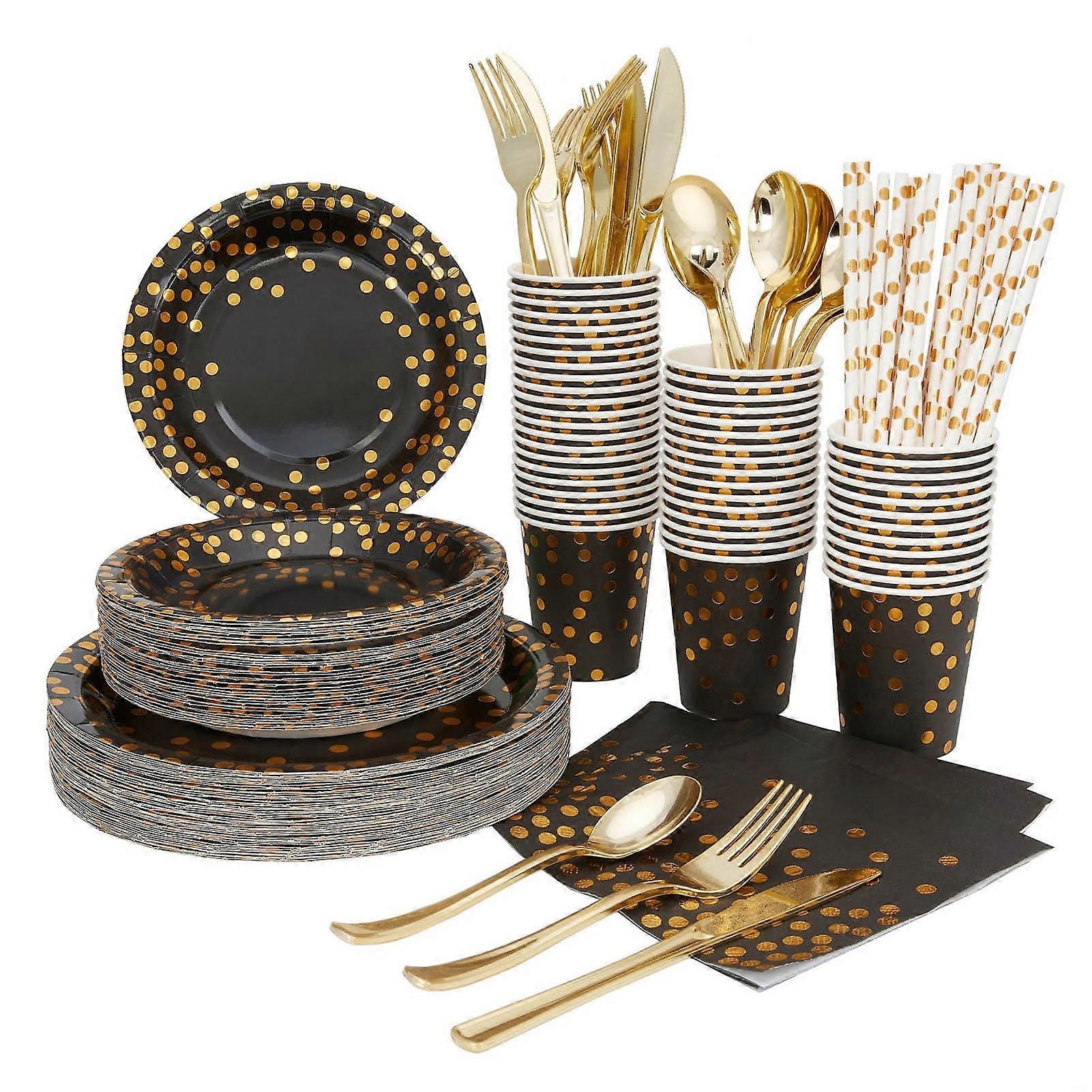 SUSUchens Dinnerware Golden Dotted Disposable Paper Table Cloth Napkins Cups Tableware for Party Style 4