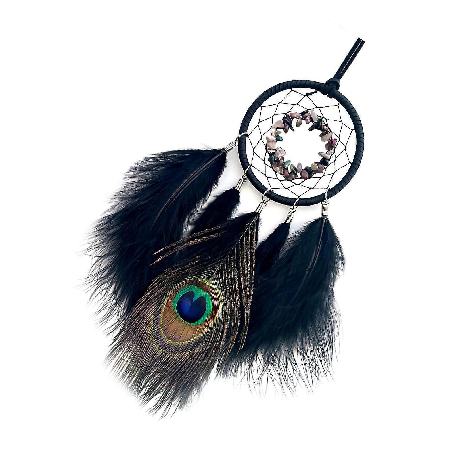 Natural Tourmaline And Feathered Car Hanging Dreamcatchers Ornament Charm Providing Mental Serenities During Long Drive Multicolor