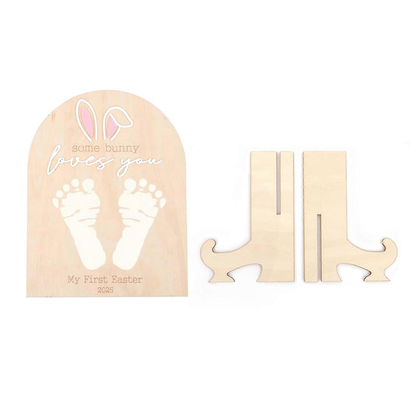Easters Footprint Keepsakes Wooden Board for Baby's First Easters DIY Milestones Wood Sign and Nursery Table Decoration Multicolor