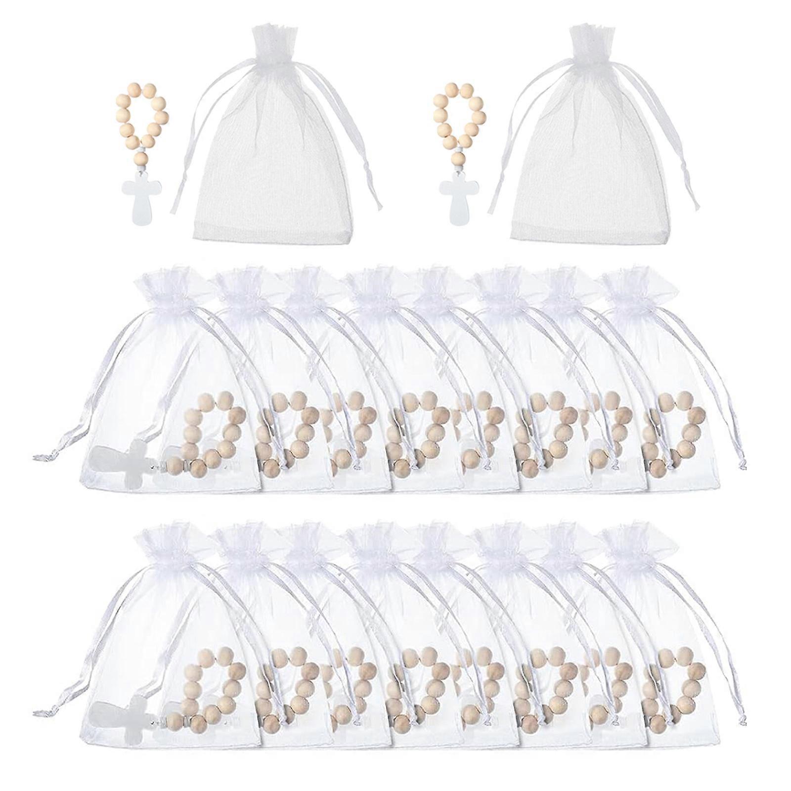 18Pcs Wood Beads Rosary Bracelets Set with Mesh Bag Baptisms First Communions Gift Suitable for Religious Believers Multicolor