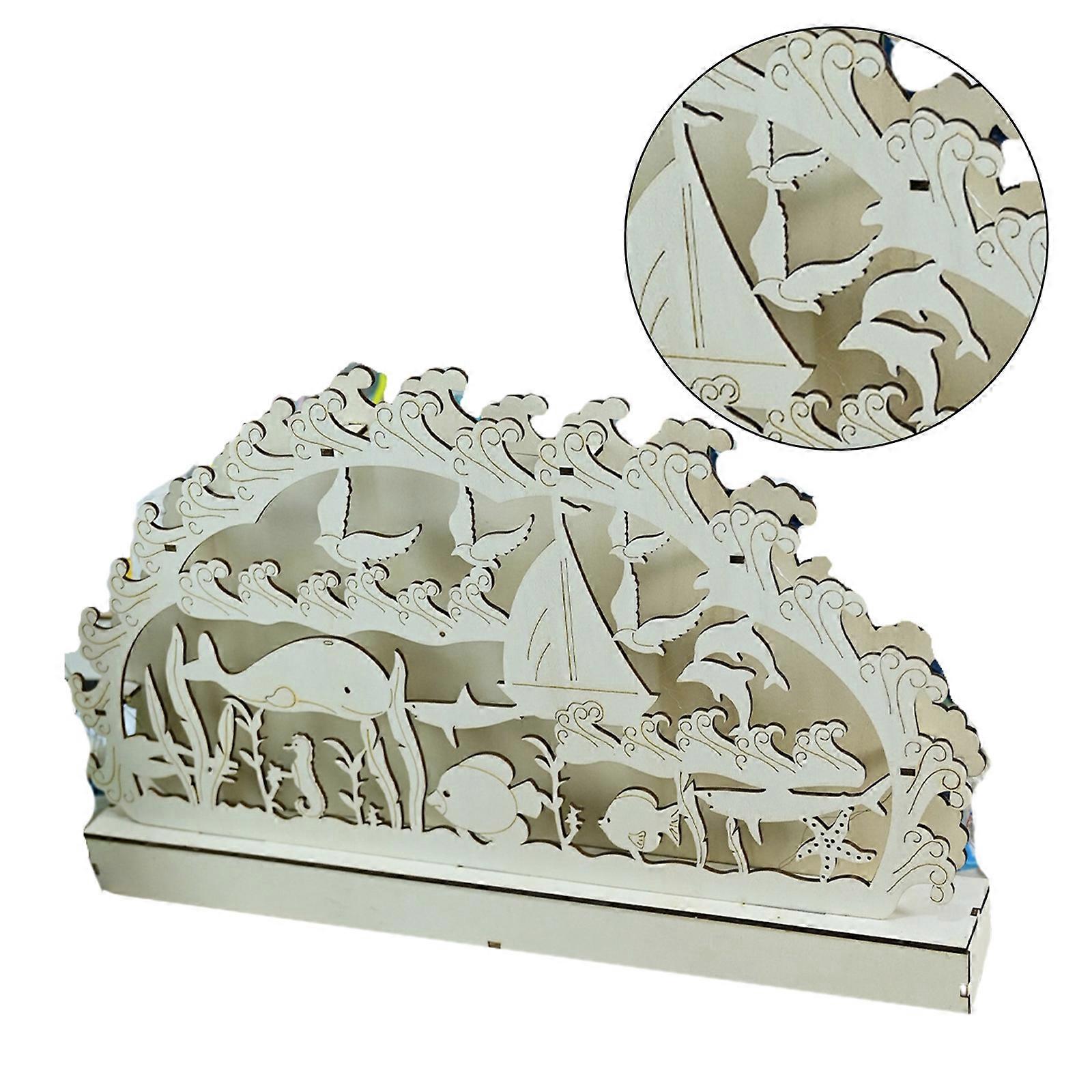 Marine Theme Hollowed Decors Elegant Wood Carve LED Light Table Decorations for House Desk Decors Led Lamp Ornament Multicolor