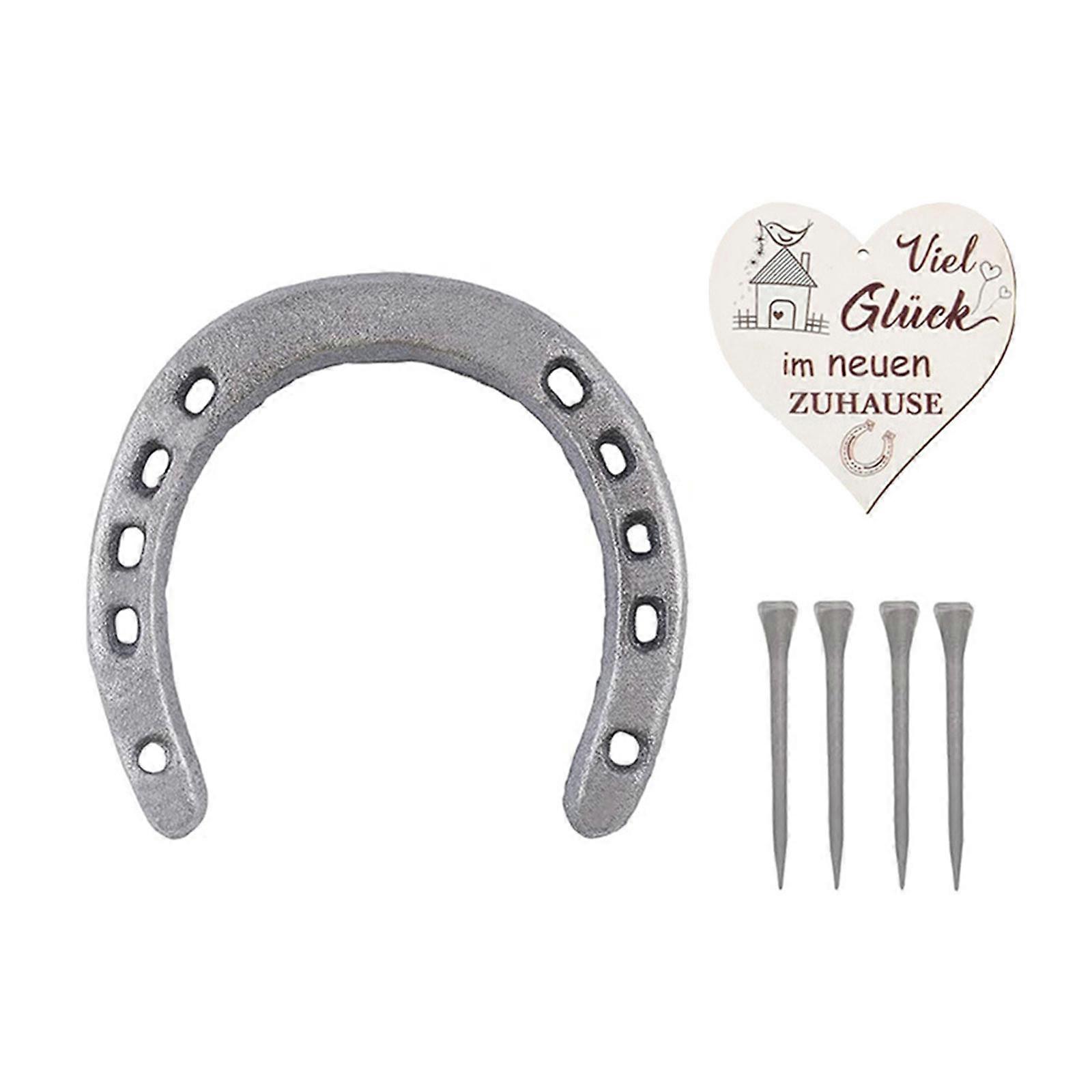 1Set Metal Horseshoe Pendant with Wood Card Craft for Wedding Babies Shower Birthday Parties Decorations Housewarming Gift Silver