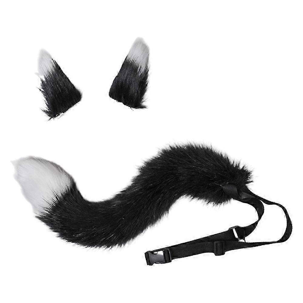 Cosplay Tail and Ears Set, Faux Fur Animal Tail with Clip for Halloween Costume Accessories