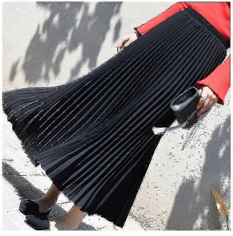Women Vintage Pleated Midi Skirt, High Waist Skirts-df
