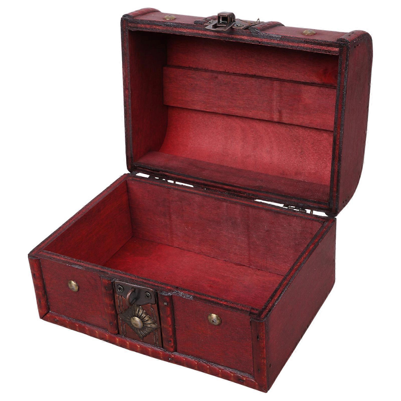 Antique Vintage Wooden Treasure Chest Decorative Wood Jewelry Storage Trunk Box with Metal Lock for Pirate Keepsake S